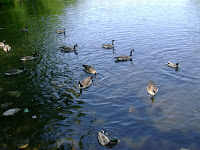 After the stop to Brian and Aprils, we went and got an oil change for Greg and then we were FINALLY on our way down to Nanjemoy. By now, it's 12pm and it's a long dive to Nanjemoy. The drive went well, practically no traffic. While in Waldorf, Amelia becomes fussy so we pull over to change and feed her. The place that we stopped at had two families of geese and baby geese. Greg took pictures and should upload them sometime this week onto his flickr account.